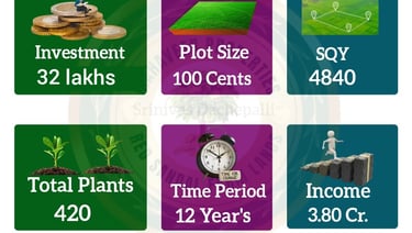 The Premium Plan involves an investment of ₹32 lakhs and includes 100 cents of red sandalwood farmland, or 4,840 square yards. This plan involves planting 420 red sandalwood trees and provides the highest return among the options. After a 12-year period, investors can expect a profit of ₹3.8 crores. This plan is tailored for individuals interested in premium land size, maximum profit potential, and long-term high-value growth.